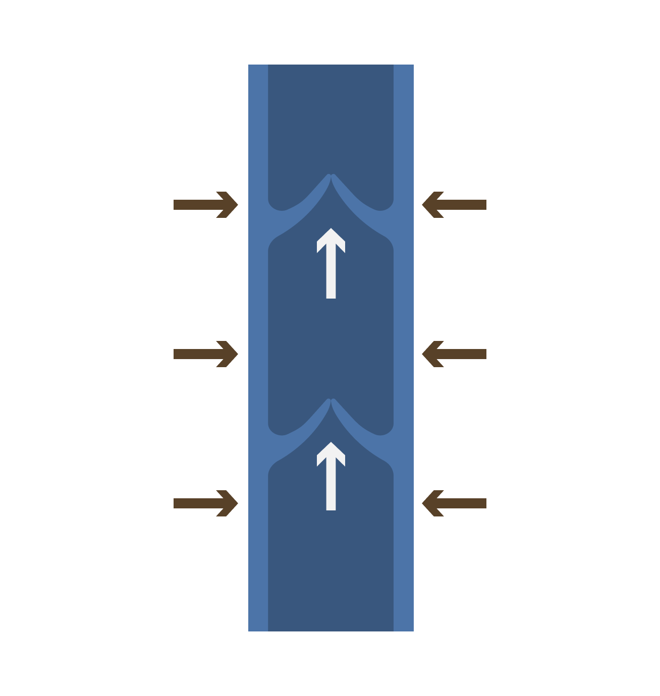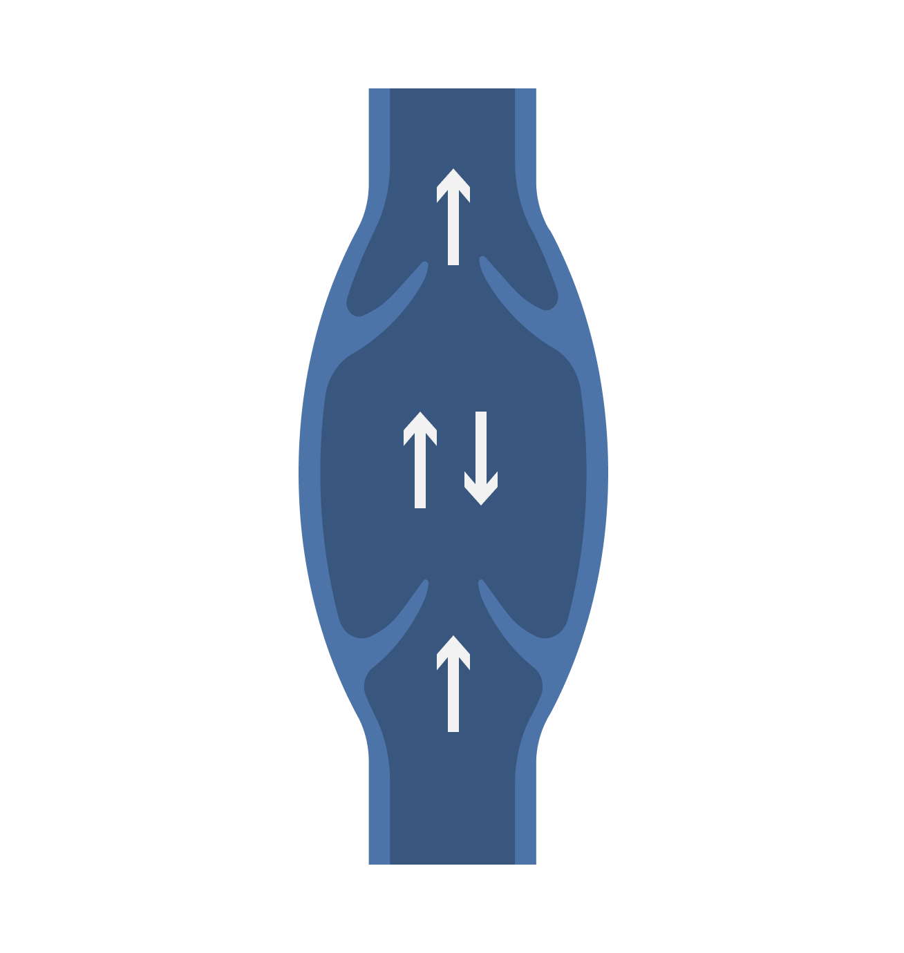 다리에 역류하여 혈관이 확장되는 것이 주요 원리입니다.